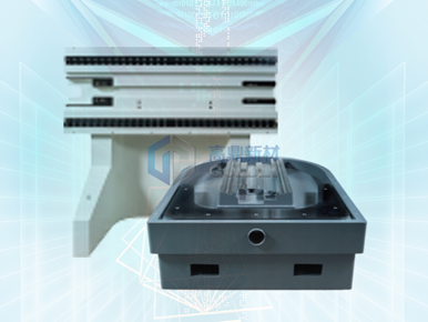 礦物鑄件又稱“人造大理石”“樹脂混凝土”,是用天然石碎料/鵝卵石、黃砂等為骨料,改性環(huán)氧樹脂等為膠凝材料,加入部分填料和外加劑經(jīng)過(guò)混合攪拌、振動(dòng)密實(shí)而形成的一種新型高分子復(fù)合材料。其具有的復(fù)雜外型的成型能力和整合能力,高精度,良好的吸震性、熱穩(wěn)定性及耐腐蝕性等優(yōu)勢(shì)。